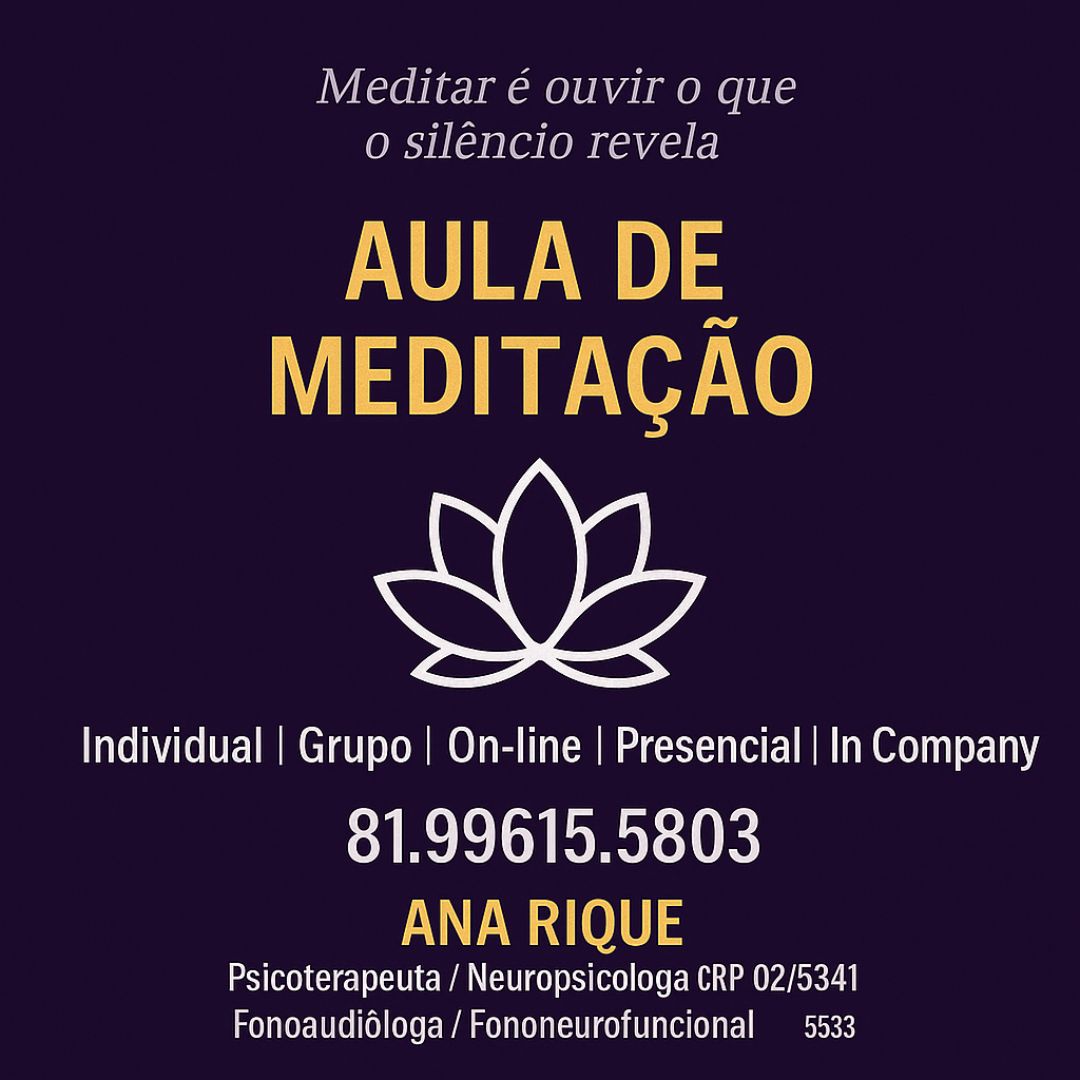 A Aula de Meditação com Ana Rique é um convite para silenciar o caos, reconectar-se consigo mesmo e despertar uma paz que já existe dentro de você, mas talvez esteja adormecida pelas pressões do dia a dia. Em um ambiente seguro, acolhedor e conduzido por uma profissional que une Psicologia, Neuropsicologia e Fonoaudiologia, você aprenderá a respirar com consciência, aquietar a mente e transformar emoções em equilíbrio. Esta experiência não é apenas sobre sentar e fechar os olhos; é sobre mergulhar em um processo de autoconhecimento, reorganização emocional e fortalecimento mental. A prática guiada auxilia na redução da ansiedade, melhora do foco, qualidade do sono e no desenvolvimento de controle emocional diante de situações desafiadoras. A aula é ideal para quem busca aliviar estresse, controlar pensamentos acelerados, encontrar clareza interna e despertar uma sensação real de leveza e plenitude. Não é preciso ter experiência anterior: você será orientado passo a passo a desenvolver uma relação amorosa com sua mente, sua respiração e seu corpo. Aqui, cada respiração se torna cura. Cada silêncio, um reencontro. E cada momento vivenciado, uma jornada de luz.