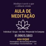 A Aula de Meditação com Ana Rique é um convite para silenciar o caos, reconectar-se consigo mesmo e despertar uma paz que já existe dentro de você, mas talvez esteja adormecida pelas pressões do dia a dia. Em um ambiente seguro, acolhedor e conduzido por uma profissional que une Psicologia, Neuropsicologia e Fonoaudiologia, você aprenderá a respirar com consciência, aquietar a mente e transformar emoções em equilíbrio. Esta experiência não é apenas sobre sentar e fechar os olhos; é sobre mergulhar em um processo de autoconhecimento, reorganização emocional e fortalecimento mental. A prática guiada auxilia na redução da ansiedade, melhora do foco, qualidade do sono e no desenvolvimento de controle emocional diante de situações desafiadoras. A aula é ideal para quem busca aliviar estresse, controlar pensamentos acelerados, encontrar clareza interna e despertar uma sensação real de leveza e plenitude. Não é preciso ter experiência anterior: você será orientado passo a passo a desenvolver uma relação amorosa com sua mente, sua respiração e seu corpo. Aqui, cada respiração se torna cura. Cada silêncio, um reencontro. E cada momento vivenciado, uma jornada de luz.