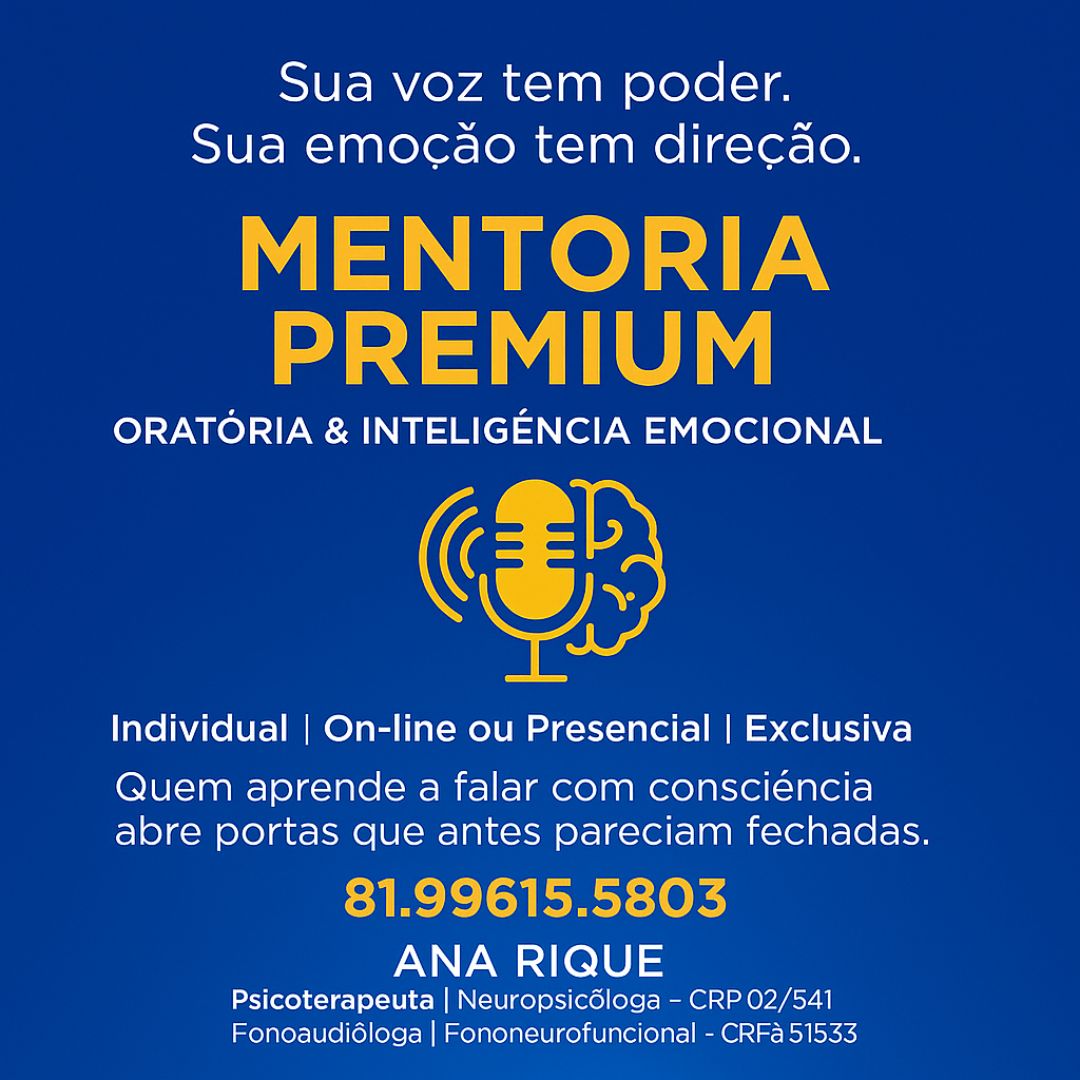 A Mentoria em Inteligência Emocional & Oratória foi criada para pessoas que sentem que possuem potencial, mas ainda enfrentam bloqueios emocionais diante da fala, da exposição, da autoconfiança e da conexão com os outros. Aqui, você não aprende apenas a falar — você aprende a sentir, conduzir emoções e transformar sua voz em ferramenta de impacto e influência. Unindo Psicologia, Neuropsicologia e Fonoaudiologia, esta mentoria desprograma crenças limitantes, reconstrói a autoestima comunicativa e ativa a segurança emocional necessária para falar em público, liderar reuniões, apresentar projetos, vender ideias ou expor sua história sem medo. Você vai compreender seus gatilhos emocionais, aprender técnicas para controlar ansiedade, modular o tom de voz, construir narrativas autênticas e criar presença de palco — mesmo que sua plateia seja uma única pessoa ou milhares. Não importa se você é tímido, inseguro, líder, profissional de saúde, docente, empreendedor ou comunicador iniciante: esta jornada é para quem deseja falar com verdade, equilíbrio e poder. Ao final, você não será apenas alguém que aprendeu técnicas de oratória — mas alguém que desbloqueou a coragem de existir através da própria voz, com inteligência emocional, consciência e conexão.